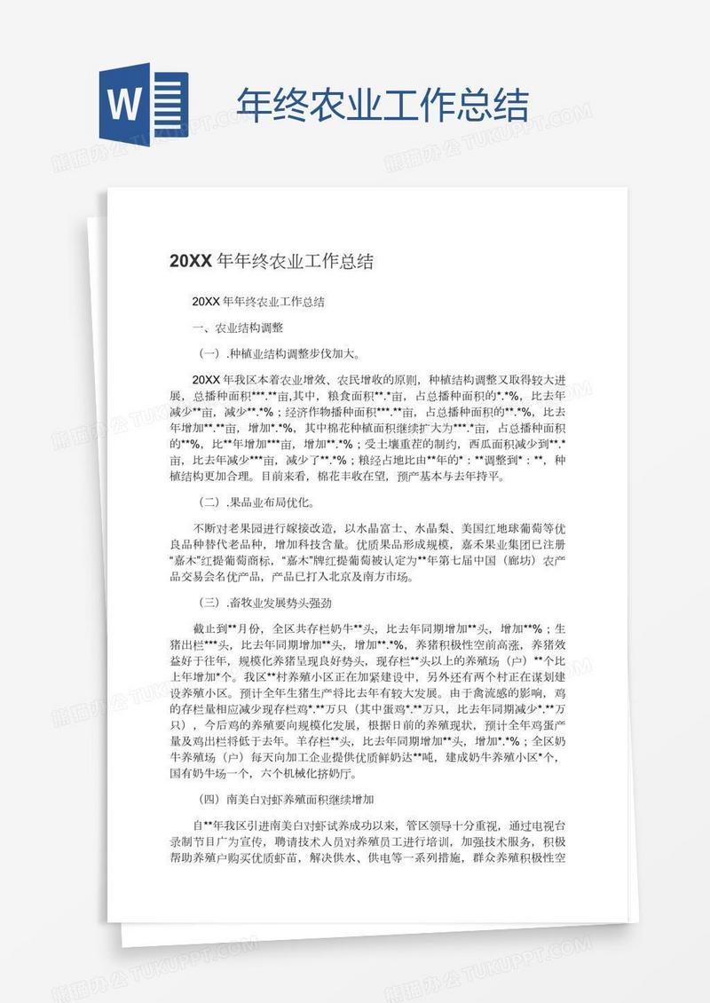本作品为年终农业工作总结, 编号:k1n2neq851, 格式为 docx, 大小1 MB, 本作品下载后,先解压,解压之后用推荐软件 Word(2010) 打开, 然后进行编辑功能。