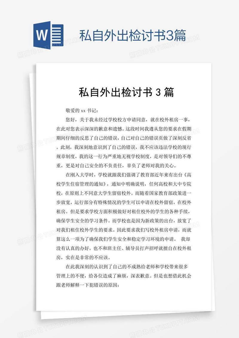 本作品为私自外出检讨书3篇, 编号:k1n2nrqyq1, 格式为 doc, 大小1 MB, 本作品下载后,先解压,解压之后用推荐软件 Word(2010) 打开, 然后进行编辑功能。
