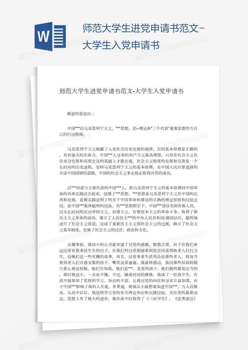 本作品为师范大学生进党申请书范文, 编号:k9g542ljd1, 格式为 docx, 大小1 MB, 本作品下载后,先解压,解压之后用推荐软件 Word(2010) 打开, 然后进行编辑功能。