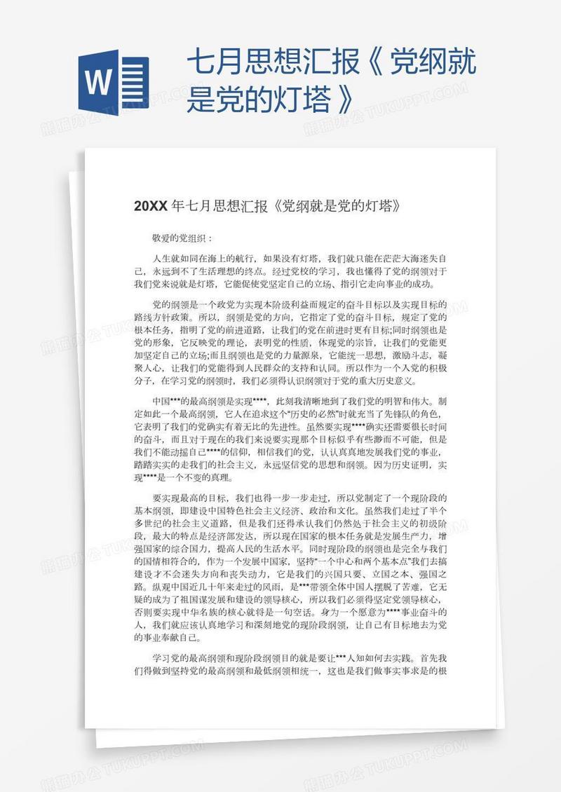 本作品为七月思想汇报《党纲就是党的灯塔》, 编号:k9g542o281, 格式为 docx, 大小1 MB, 本作品下载后,先解压,解压之后用推荐软件 Word(2010) 打开, 然后进行编辑功能。