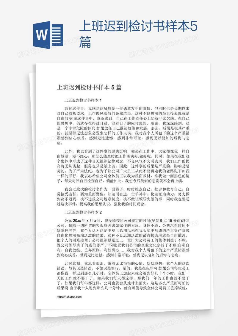 本作品为上班迟到检讨书样本5篇, 编号:k9g54b2e41, 格式为 docx, 大小1 MB, 本作品下载后,先解压,解压之后用推荐软件 Word(2010) 打开, 然后进行编辑功能。