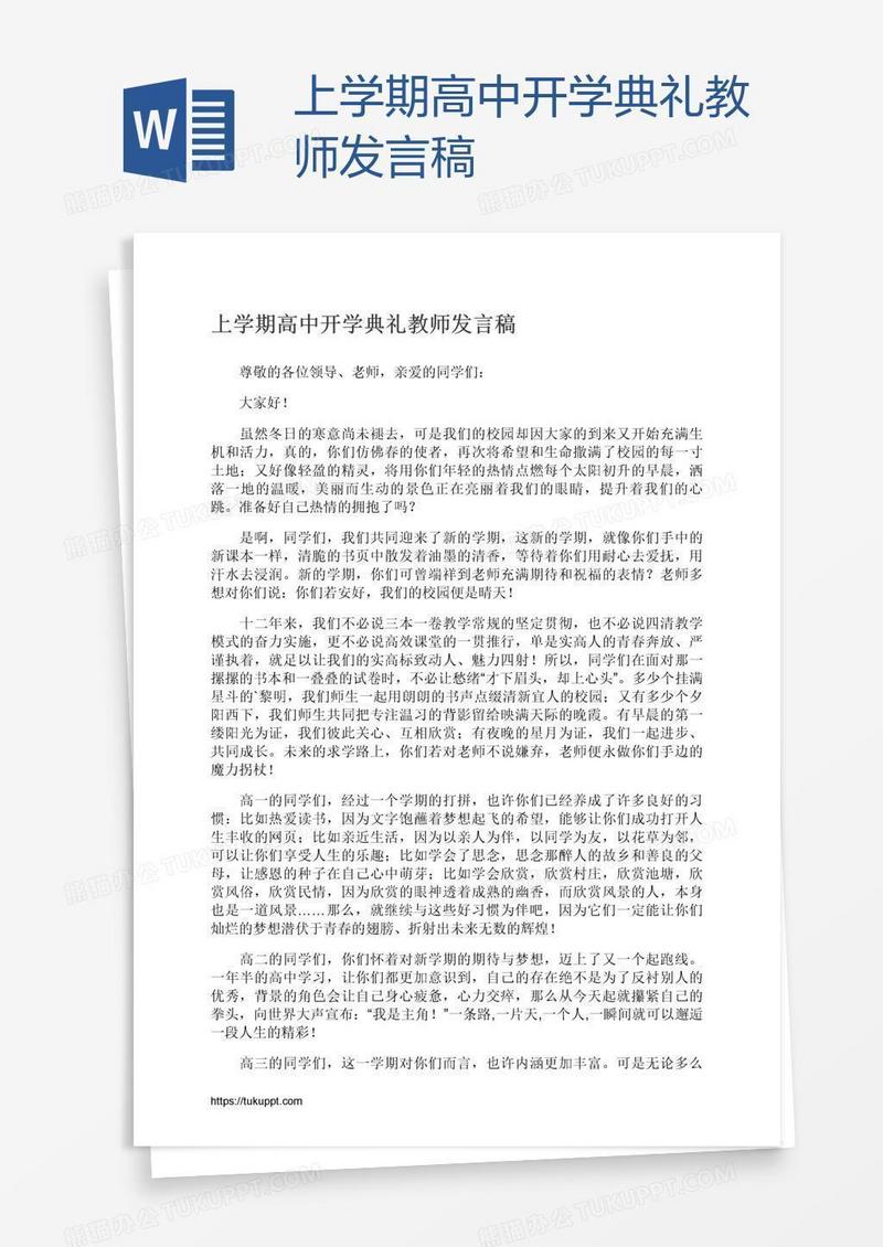 本作品为上学期高中开学典礼教师发言稿, 编号:k9g54bm781, 格式为 docx, 大小1 MB, 本作品下载后,先解压,解压之后用推荐软件 Word(2010) 打开, 然后进行编辑功能。