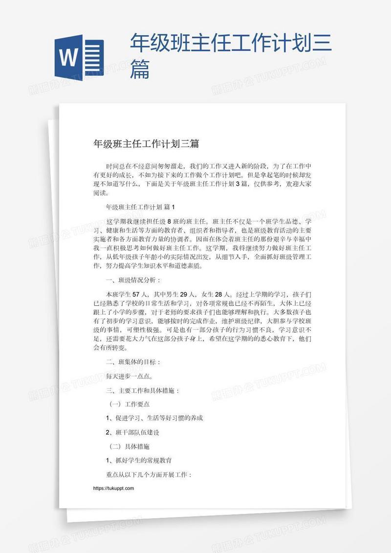 本作品为年级班主任工作计划三篇, 编号:k9g5k5g541, 格式为 docx, 大小1 MB, 本作品下载后,先解压,解压之后用推荐软件 Word(2010) 打开, 然后进行编辑功能。