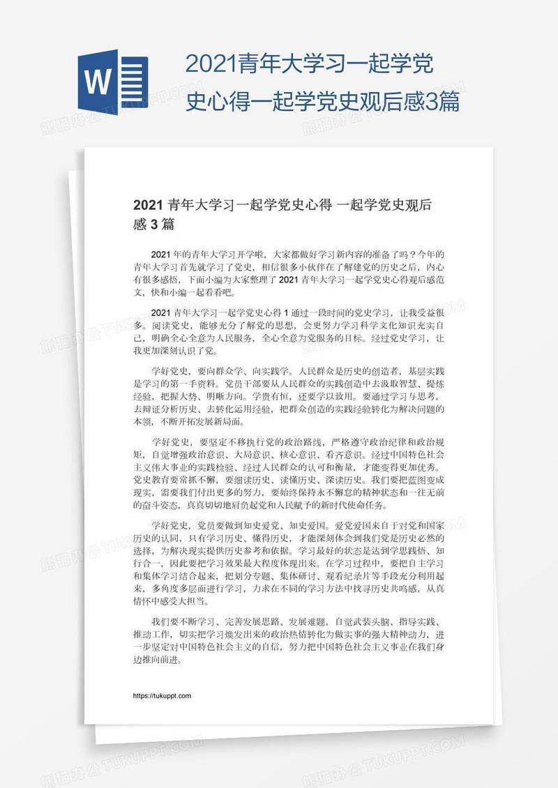 本作品为2021青年大学习一起学党史心得一起学党史观后感3篇, 编号:k9g5k87yb1, 格式为 docx, 大小1 MB, 本作品下载后,先解压,解压之后用推荐软件 Word(2010) 打开, 然后进行编辑功能。