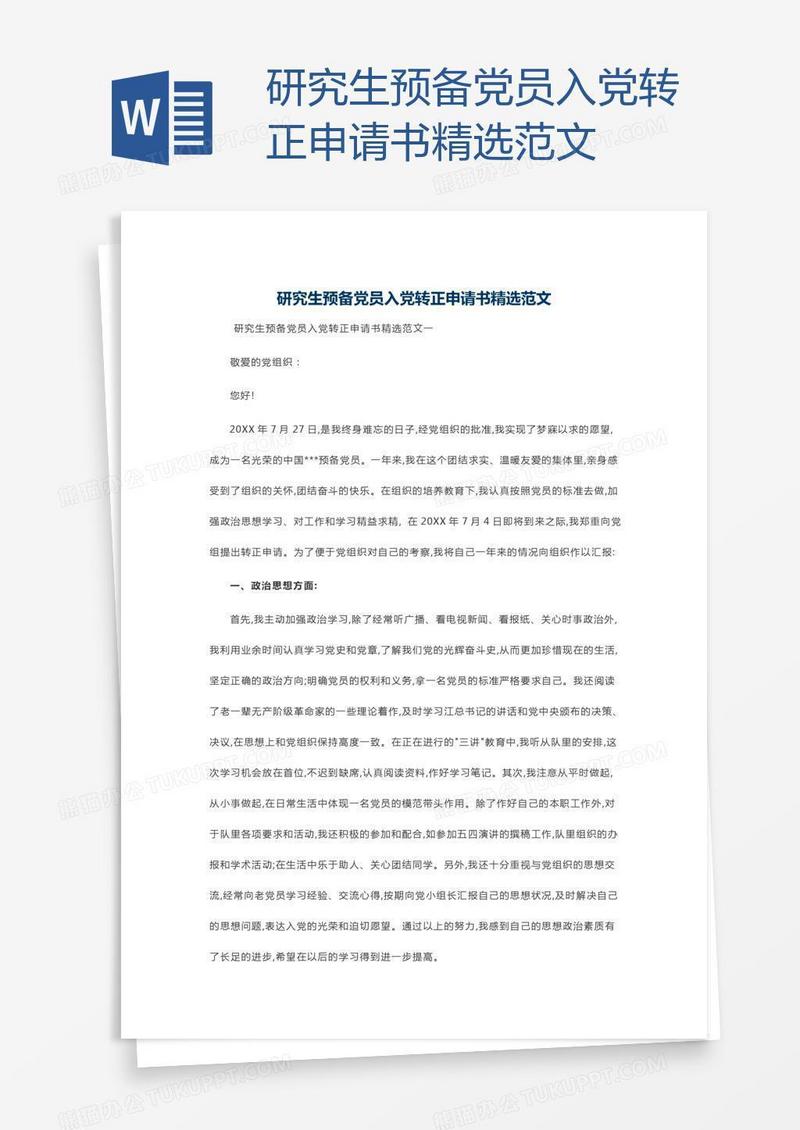 本作品为研究生预备党员入党转正申请书精选范文, 编号:k9g5kjrq41, 格式为 docx, 大小1 MB, 本作品下载后,先解压,解压之后用推荐软件 Word(2010) 打开, 然后进行编辑功能。