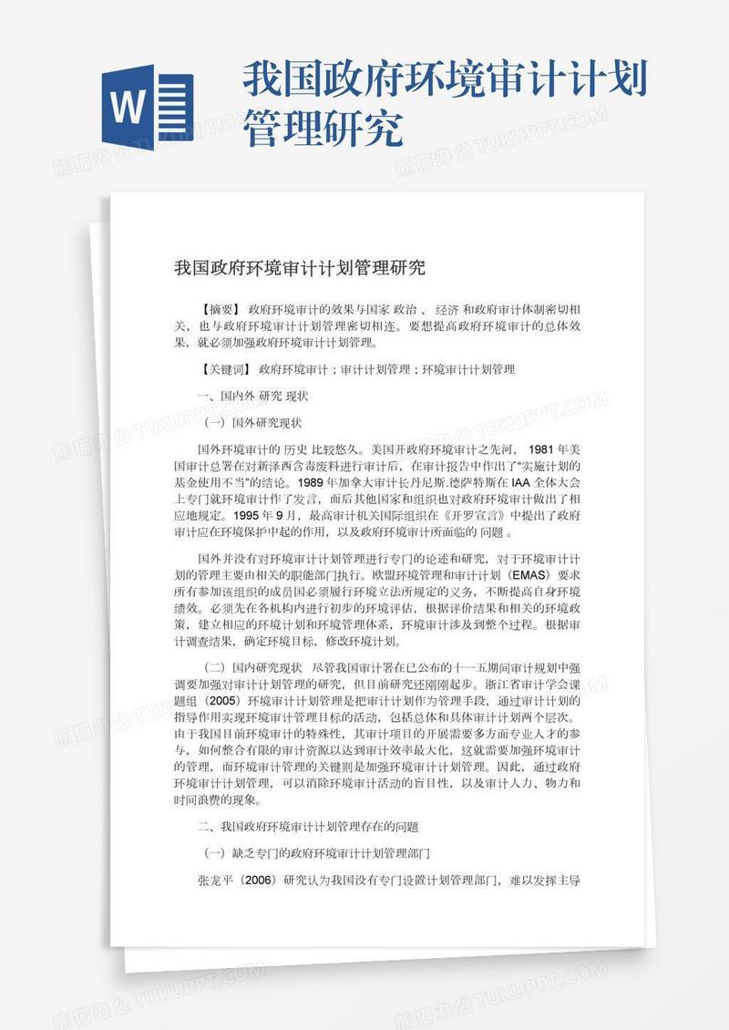 本作品为我国政府环境审计计划管理研究, 编号:k9g5kqo6v1, 格式为 docx, 大小1 MB, 本作品下载后,先解压,解压之后用推荐软件 Word(2010) 打开, 然后进行编辑功能。