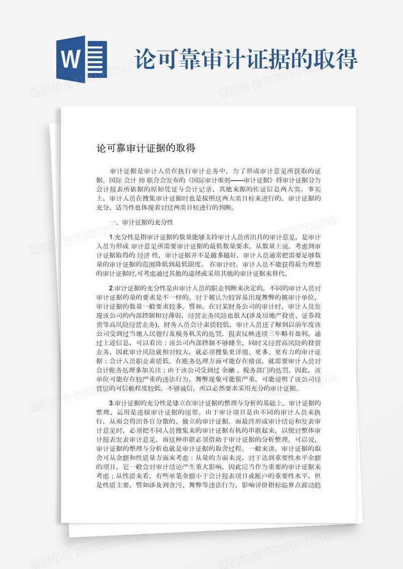 本作品为论可靠审计证据的取得, 编号:k9g5kqoo81, 格式为 docx, 大小1 MB, 本作品下载后,先解压,解压之后用推荐软件 Word(2010) 打开, 然后进行编辑功能。