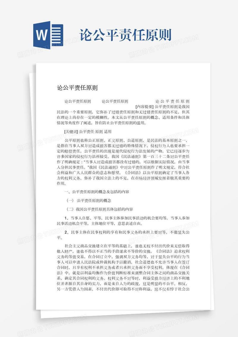 本作品为论公平责任原则, 编号:k9g5krlpb1, 格式为 docx, 大小1 MB, 本作品下载后,先解压,解压之后用推荐软件 Word(2010) 打开, 然后进行编辑功能。