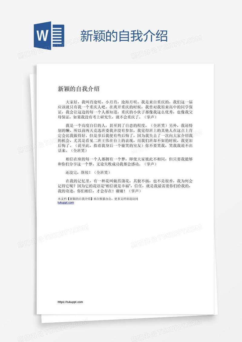 本作品为新颖的自我介绍, 编号:k9g5kv2kv1, 格式为 docx, 大小1 MB, 本作品下载后,先解压,解压之后用推荐软件 Word(2010) 打开, 然后进行编辑功能。