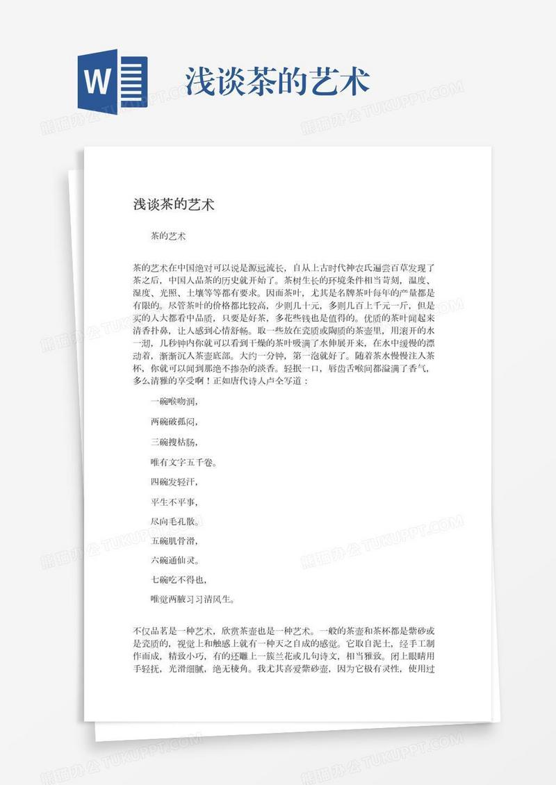 本作品为浅谈茶的艺术, 编号:k9g5l5mrb1, 格式为 docx, 大小1 MB, 本作品下载后,先解压,解压之后用推荐软件 Word(2010) 打开, 然后进行编辑功能。