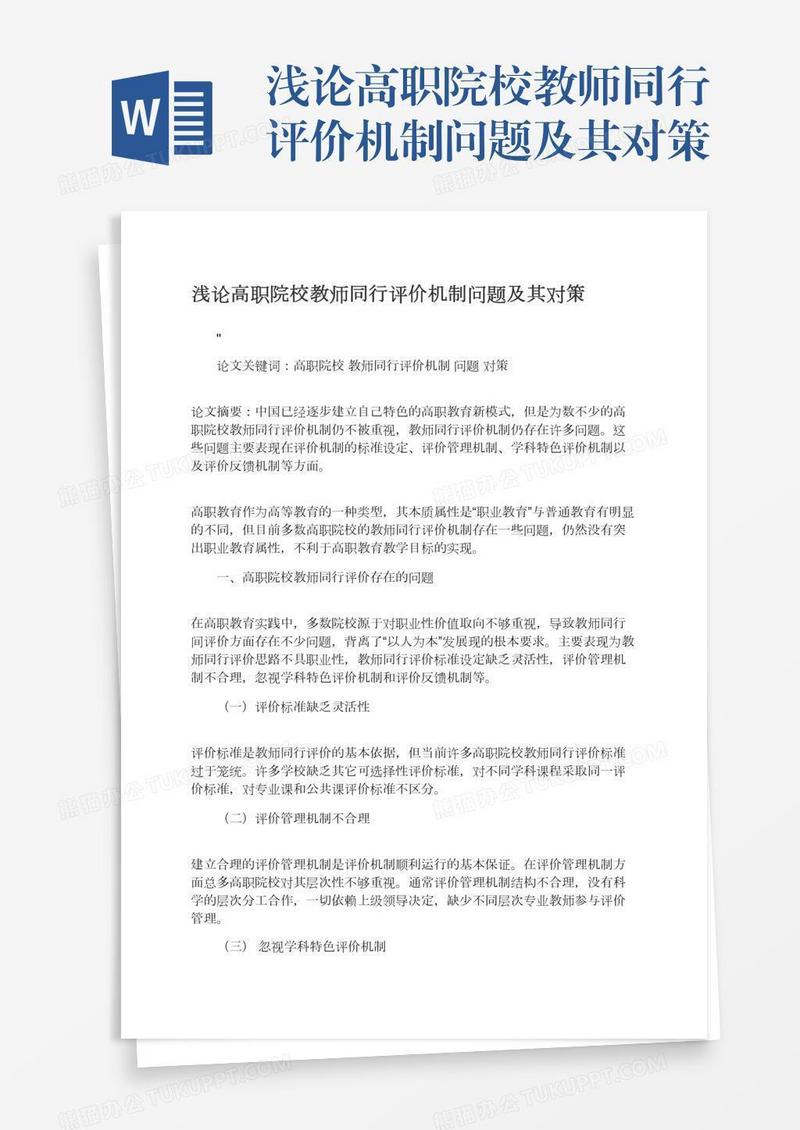 本作品为浅论高职院校教师同行评价机制问题及其对策, 编号:k9g5l5wm41, 格式为 docx, 大小1 MB, 本作品下载后,先解压,解压之后用推荐软件 Word(2010) 打开, 然后进行编辑功能。