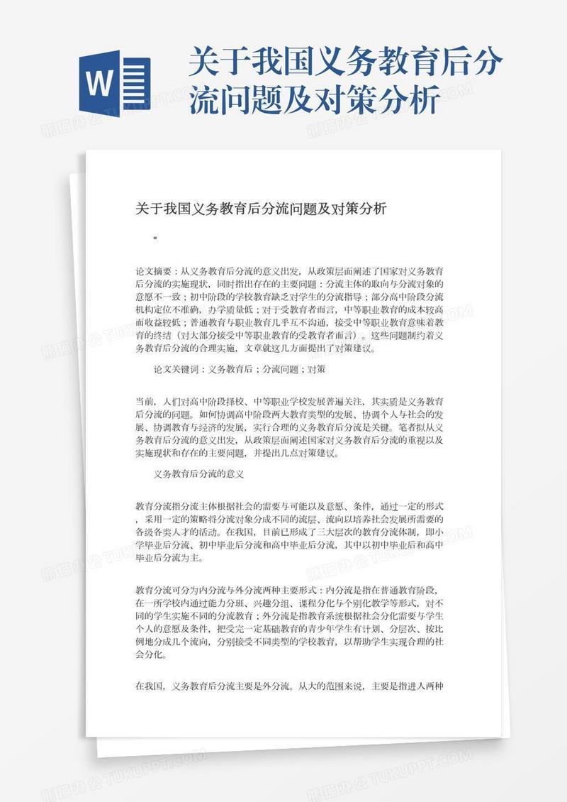 本作品为关于我国义务教育后分流问题及对策分析, 编号:k9g5l5wn41, 格式为 docx, 大小1 MB, 本作品下载后,先解压,解压之后用推荐软件 Word(2010) 打开, 然后进行编辑功能。