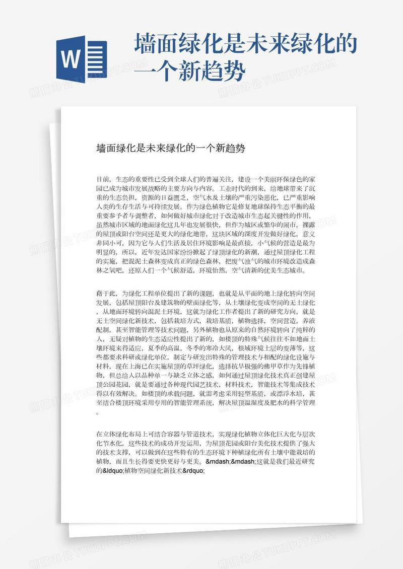本作品为墙面绿化是未来绿化的一个新趋势, 编号:k9g5lk04d1, 格式为 docx, 大小1 MB, 本作品下载后,先解压,解压之后用推荐软件 Word(2010) 打开, 然后进行编辑功能。