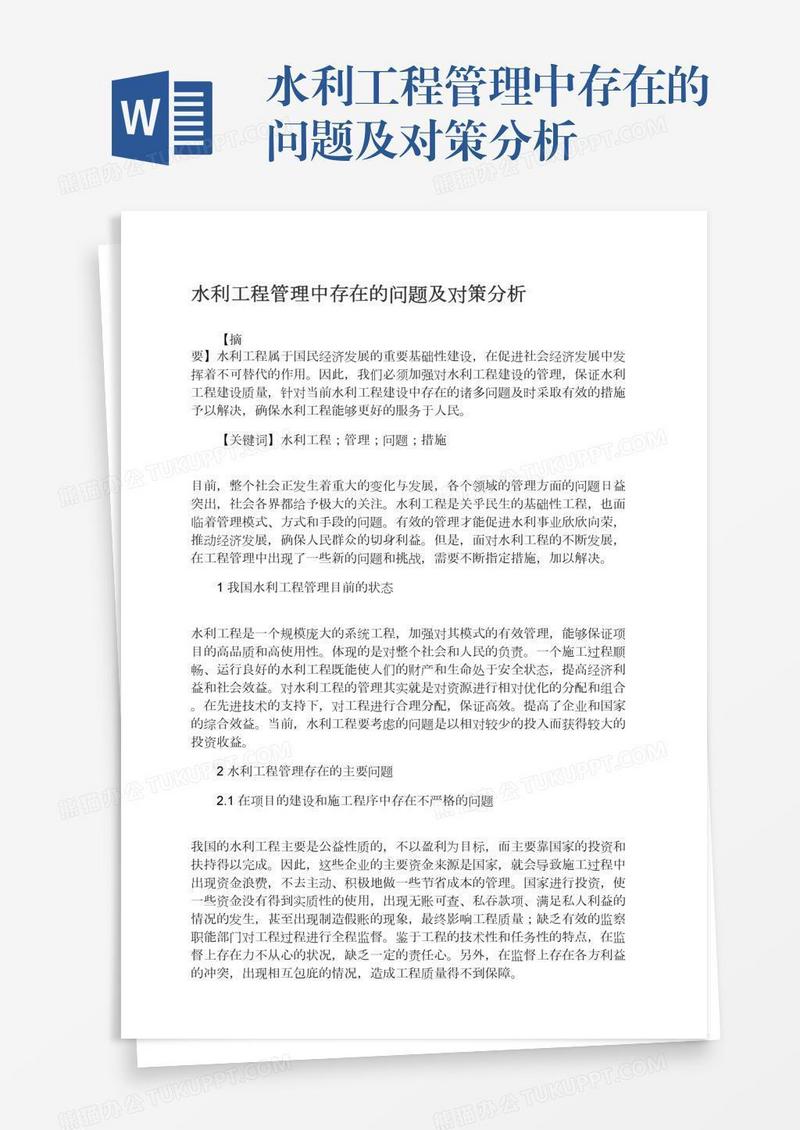 本作品为水利工程管理中存在的问题及对策分析, 编号:k9g5llprb1, 格式为 docx, 大小1 MB, 本作品下载后,先解压,解压之后用推荐软件 Word(2010) 打开, 然后进行编辑功能。