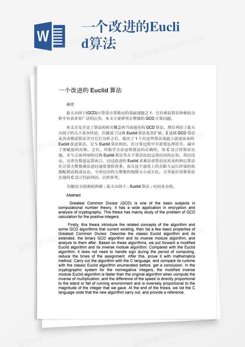 本作品为一个改进的Euclid算法, 编号:o12ymenqm9, 格式为 docx, 大小1 MB, 本作品下载后,先解压,解压之后用推荐软件 Word(2010) 打开, 然后进行编辑功能。