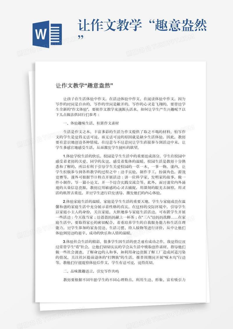 本作品为让作文教学“趣意盎然”, 编号:o12ymgejm9, 格式为 docx, 大小1 MB, 本作品下载后,先解压,解压之后用推荐软件 Word(2010) 打开, 然后进行编辑功能。