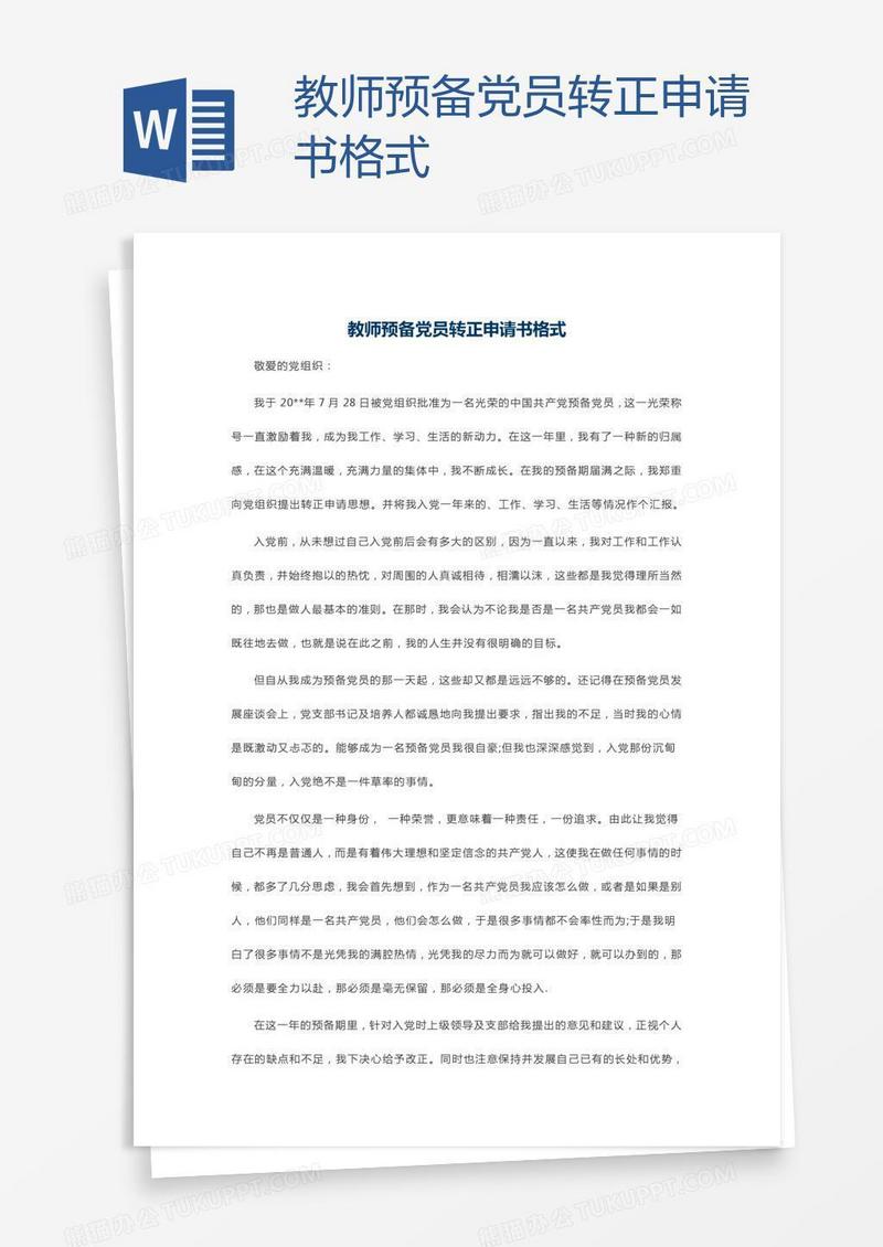 本作品为教师预备党员转正申请书格式, 编号:o12ymkd7q9, 格式为 docx, 大小1 MB, 本作品下载后,先解压,解压之后用推荐软件 Word(2010) 打开, 然后进行编辑功能。