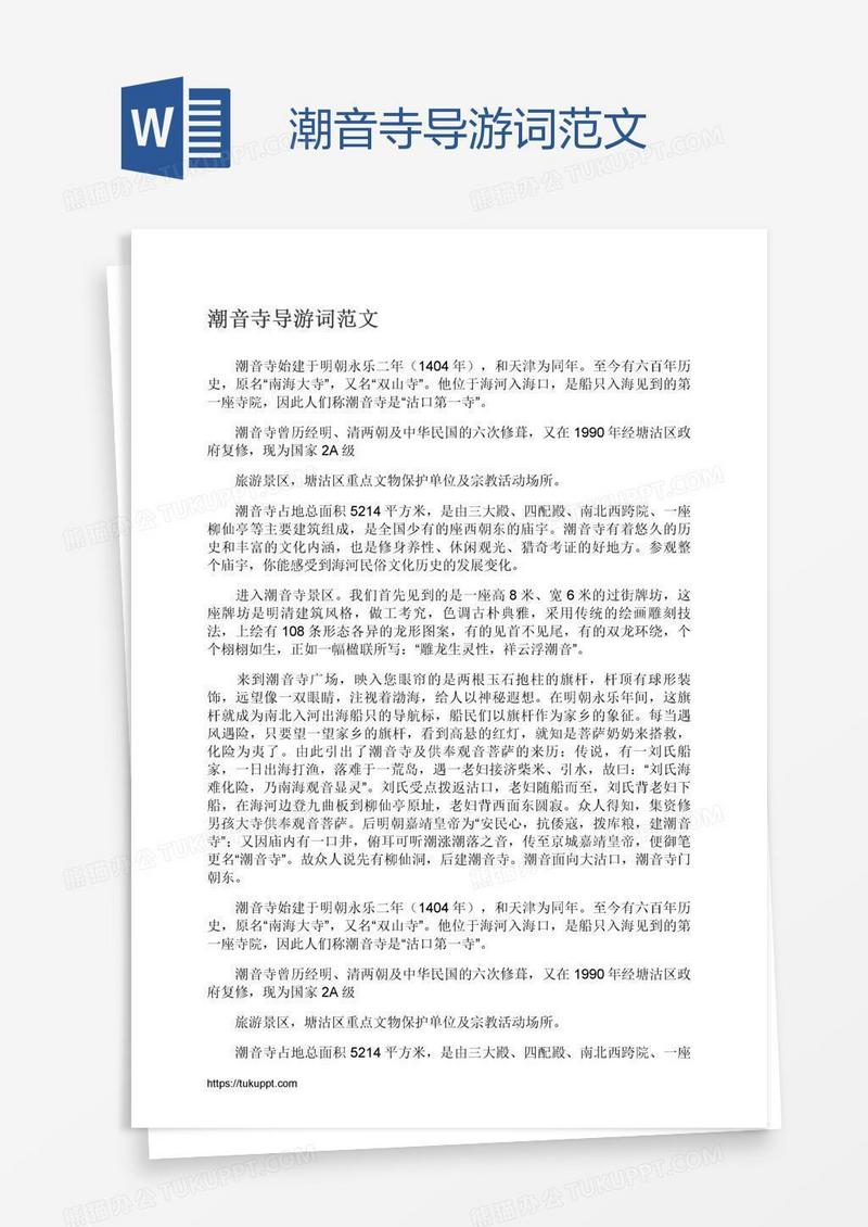 本作品为潮音寺导游词范文, 编号:o12ymm44m9, 格式为 docx, 大小1 MB, 本作品下载后,先解压,解压之后用推荐软件 Word(2010) 打开, 然后进行编辑功能。