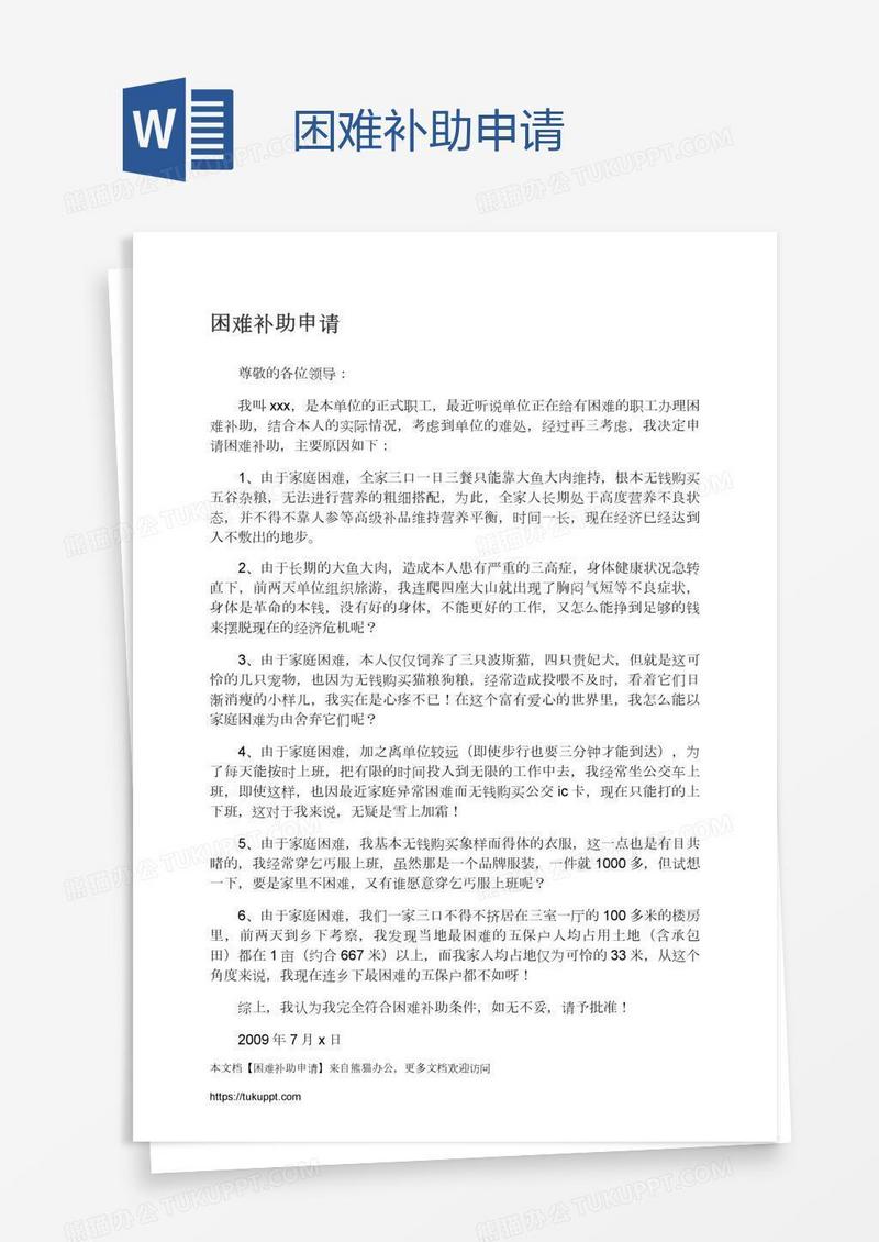 本作品为困难补助申请, 编号:o12ymq40q9, 格式为 docx, 大小1 MB, 本作品下载后,先解压,解压之后用推荐软件 Word(2010) 打开, 然后进行编辑功能。