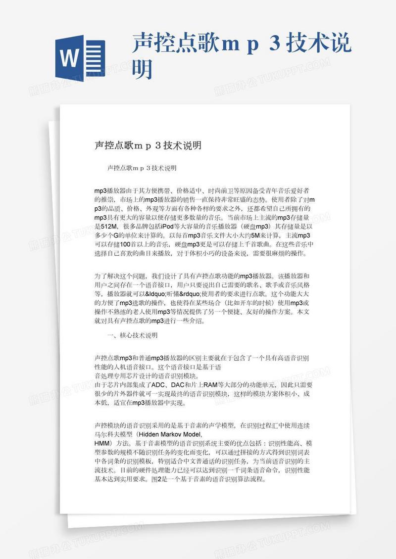 本作品为声控点歌mp3技术说明, 编号:o12yojqd49, 格式为 docx, 大小1 MB, 本作品下载后,先解压,解压之后用推荐软件 Word(2010) 打开, 然后进行编辑功能。