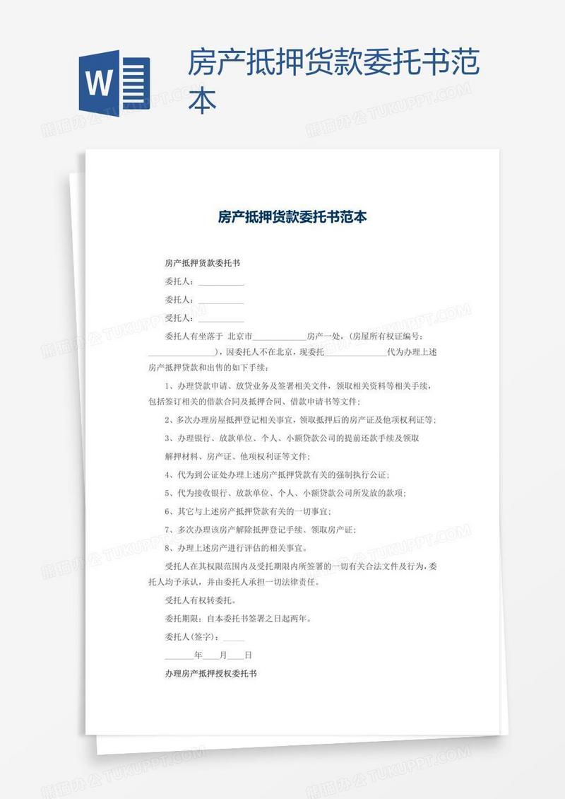 本作品为房产抵押货款委托书范本, 编号:o12ypnqkj9, 格式为 docx, 大小1 MB, 本作品下载后,先解压,解压之后用推荐软件 Word(2010) 打开, 然后进行编辑功能。
