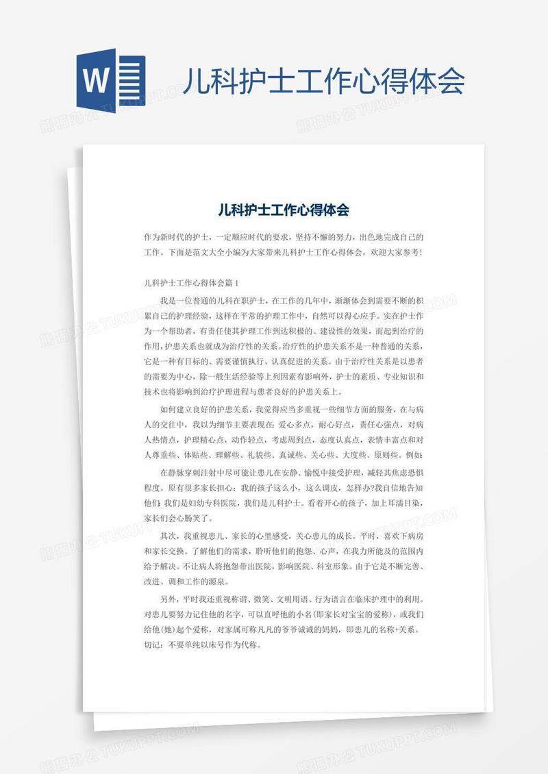 本作品为儿科护士工作心得体会, 编号:o12ypr0lw9, 格式为 docx, 大小1 MB, 本作品下载后,先解压,解压之后用推荐软件 Word(2010) 打开, 然后进行编辑功能。