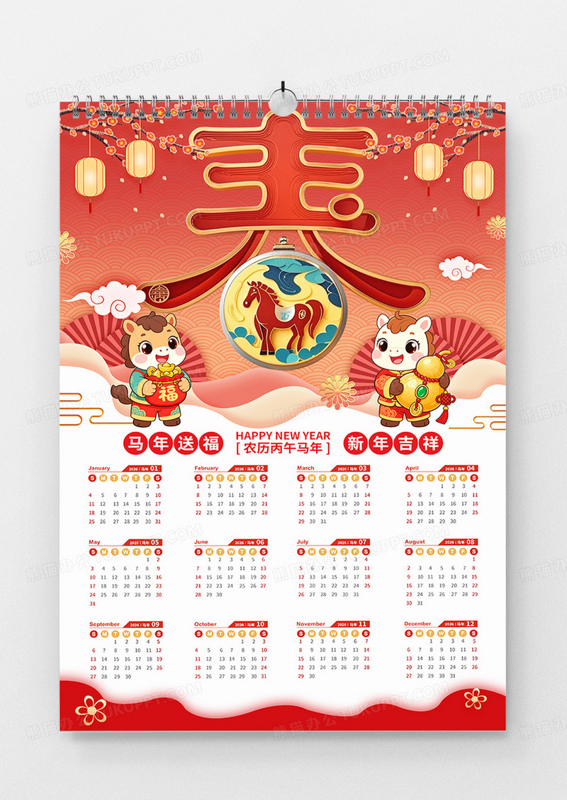 本作品为红色渐变剪纸2026马年送福马年挂历海报, 编号:q1omm2r0oa, 格式为 psd, 大小46 MB, 本作品下载后,先解压,解压之后用推荐软件 PhotoShop(CC) 打开, 然后进行编辑功能。