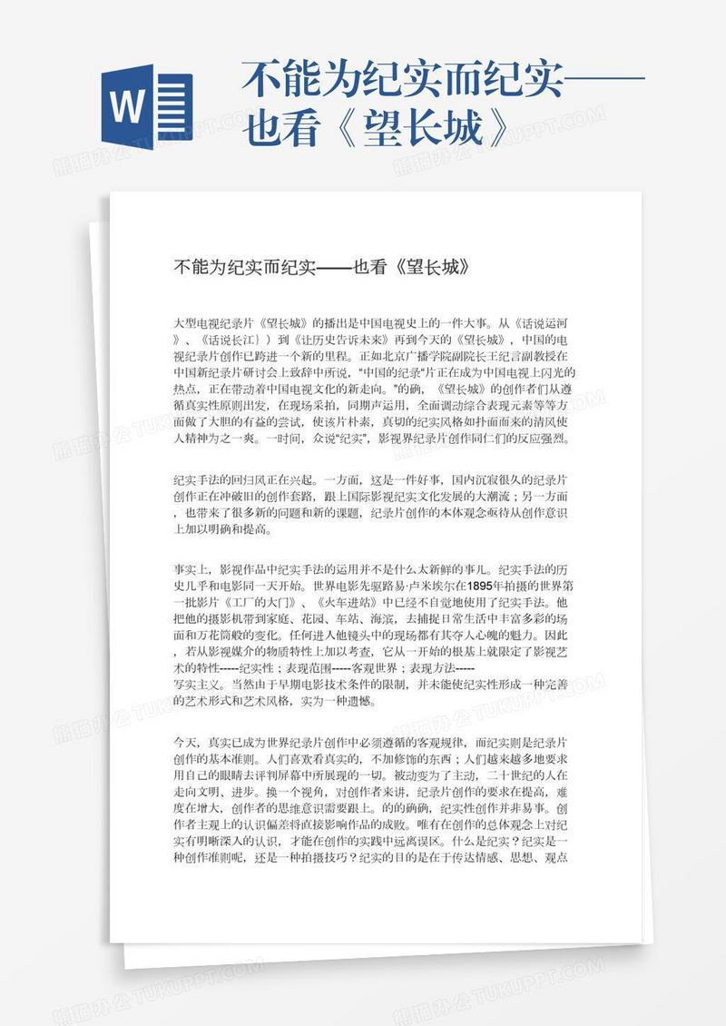 本作品为不能为纪实而纪实——也看《望长城》, 编号:q1ow3wdly9, 格式为 docx, 大小1 MB, 本作品下载后,先解压,解压之后用推荐软件 Word(2010) 打开, 然后进行编辑功能。