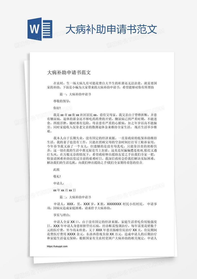 本作品为大病补助申请书范文, 编号:q1owj5yqv9, 格式为 docx, 大小1 MB, 本作品下载后,先解压,解压之后用推荐软件 Word(2010) 打开, 然后进行编辑功能。