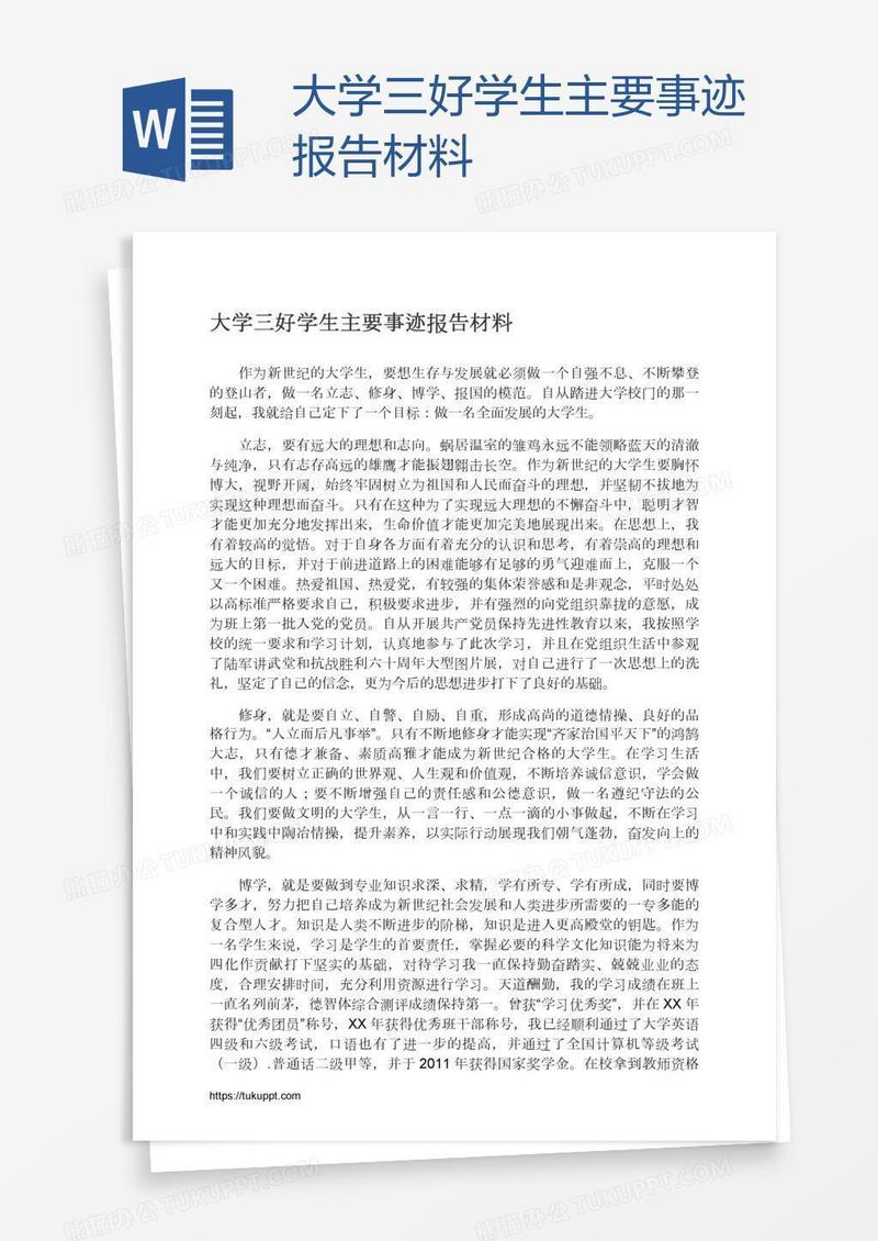 本作品为大学三好学生主要事迹报告材料, 编号:q1owjkwpo9, 格式为 docx, 大小1 MB, 本作品下载后,先解压,解压之后用推荐软件 Word(2010) 打开, 然后进行编辑功能。