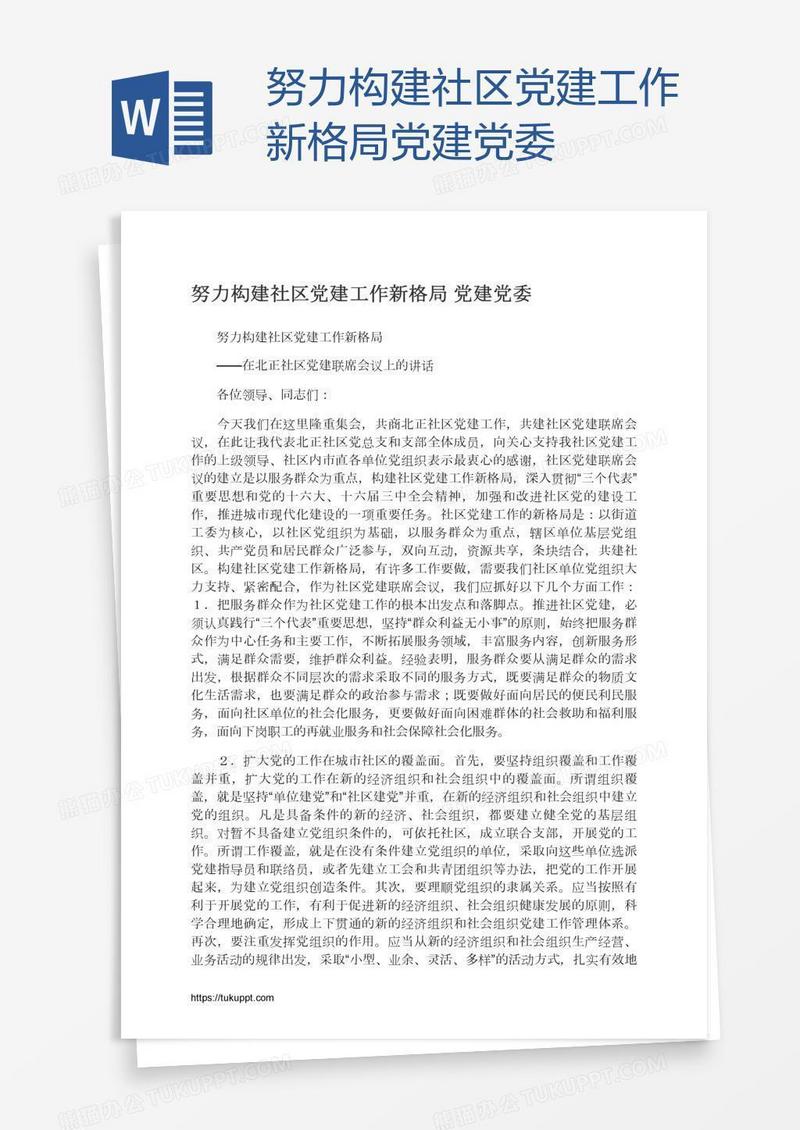 本作品为努力构建社区党建工作新格局党建党委, 编号:q1owjqo8o9, 格式为 docx, 大小1 MB, 本作品下载后,先解压,解压之后用推荐软件 Word(2010) 打开, 然后进行编辑功能。