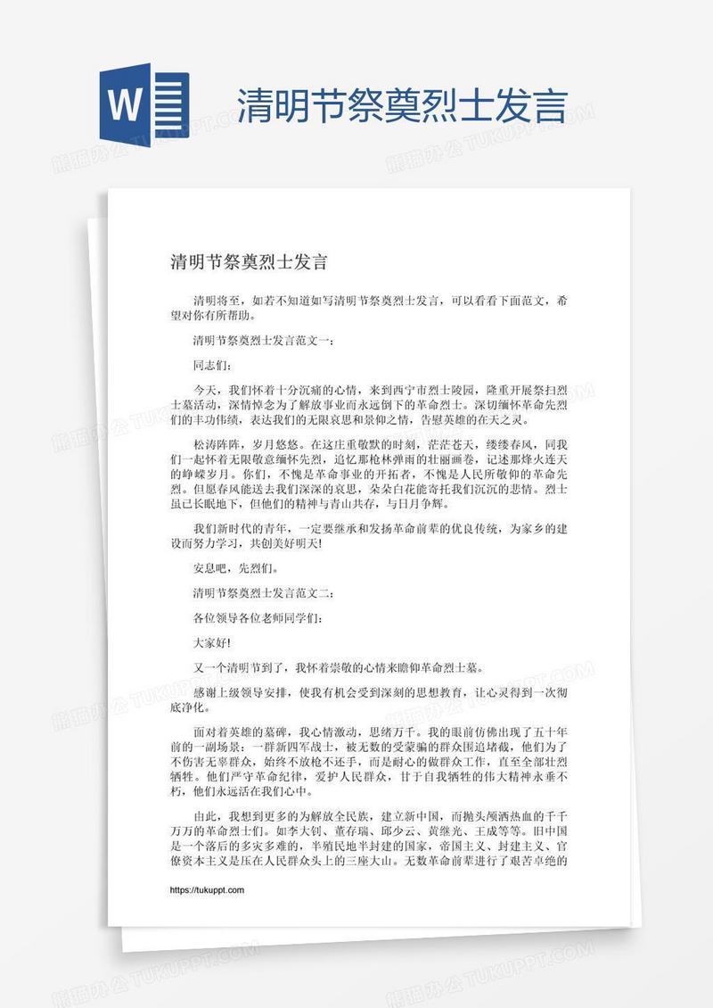 本作品为清明节祭奠烈士发言, 编号:q1owjwkjp9, 格式为 docx, 大小1 MB, 本作品下载后,先解压,解压之后用推荐软件 Word(2010) 打开, 然后进行编辑功能。