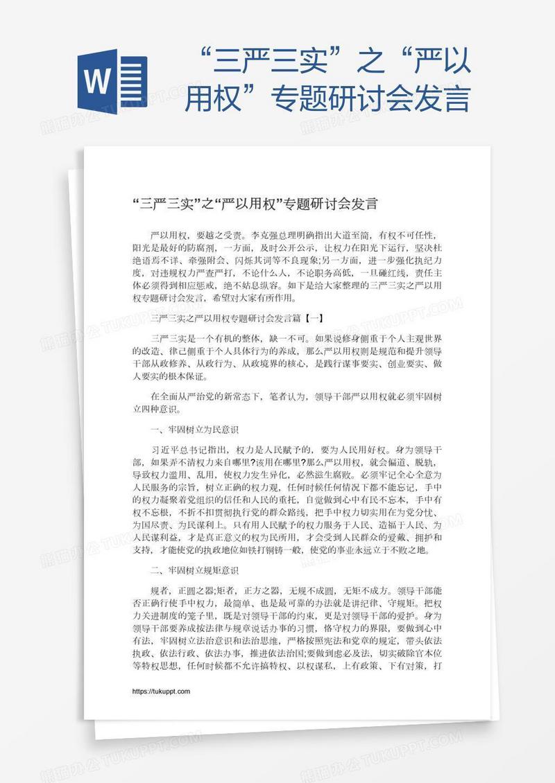 本作品为“三严三实”之“严以用权”专题研讨会发言, 编号:q1owjy8qv9, 格式为 docx, 大小1 MB, 本作品下载后,先解压,解压之后用推荐软件 Word(2010) 打开, 然后进行编辑功能。