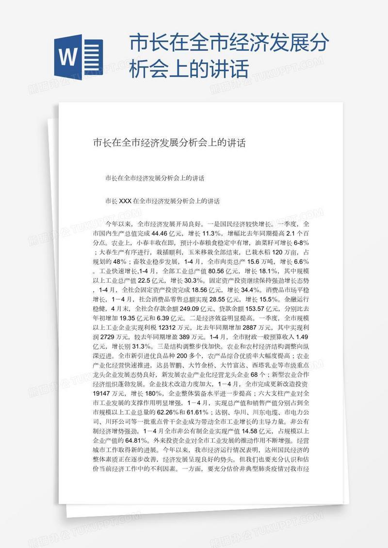 本作品为市长在全市经济发展分析会上的讲话, 编号:q1own6owp9, 格式为 docx, 大小1 MB, 本作品下载后,先解压,解压之后用推荐软件 Word(2010) 打开, 然后进行编辑功能。