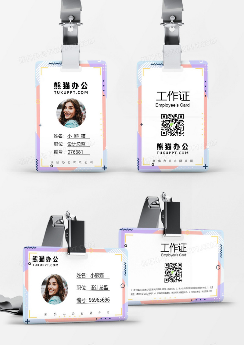 本作品为创意炫彩风企业员工工作证Word模板, 编号:q1ownbloo9, 格式为 docx, 大小5 MB, 本作品下载后,先解压,解压之后用推荐软件 Word(2016) 打开, 然后进行编辑功能。