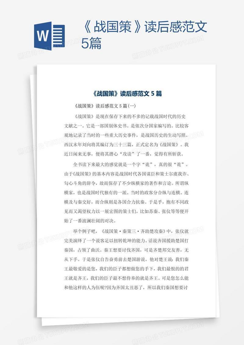 本作品为《战国策》读后感范文5篇, 编号:q1ownl67n9, 格式为 docx, 大小1 MB, 本作品下载后,先解压,解压之后用推荐软件 Word(2010) 打开, 然后进行编辑功能。