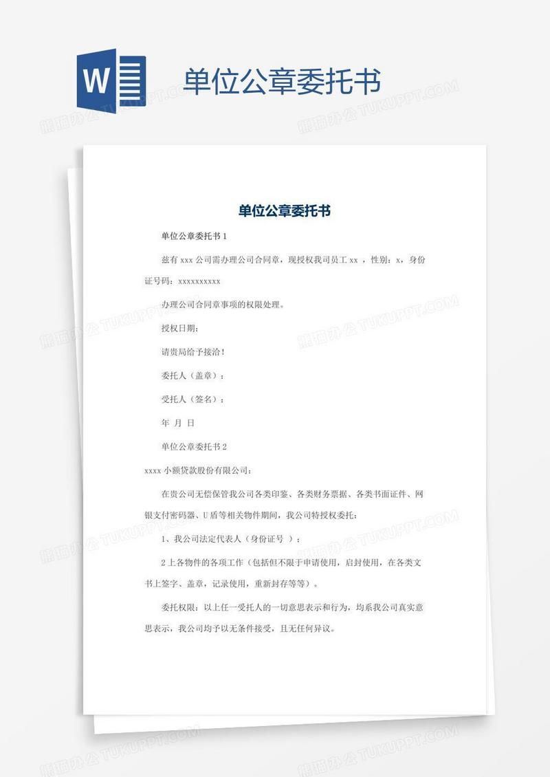 本作品为单位公章委托书, 编号:q1ownlybn9, 格式为 docx, 大小1 MB, 本作品下载后,先解压,解压之后用推荐软件 Word(2010) 打开, 然后进行编辑功能。
