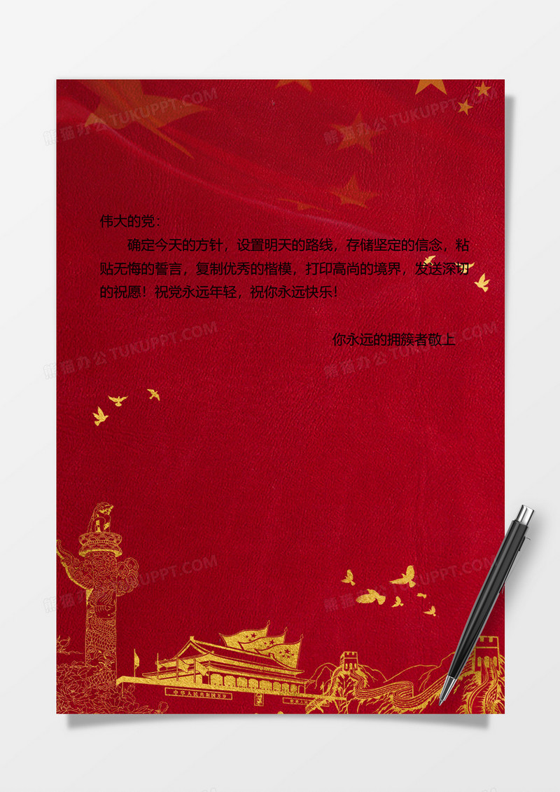 大红党政信纸背景