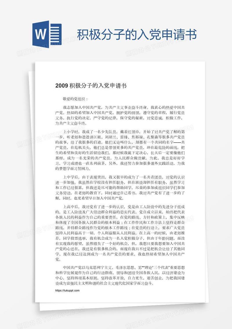 本作品为积极分子的入党申请书, 编号:r1p3b4prk9, 格式为 docx, 大小1 MB, 本作品下载后,先解压,解压之后用推荐软件 Word(2010) 打开, 然后进行编辑功能。