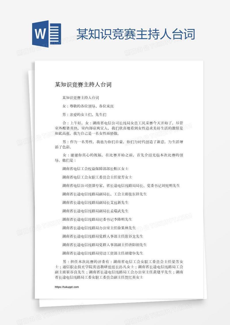 本作品为某知识竞赛主持人台词, 编号:r1p3b8pkk9, 格式为 docx, 大小1 MB, 本作品下载后,先解压,解压之后用推荐软件 Word(2010) 打开, 然后进行编辑功能。
