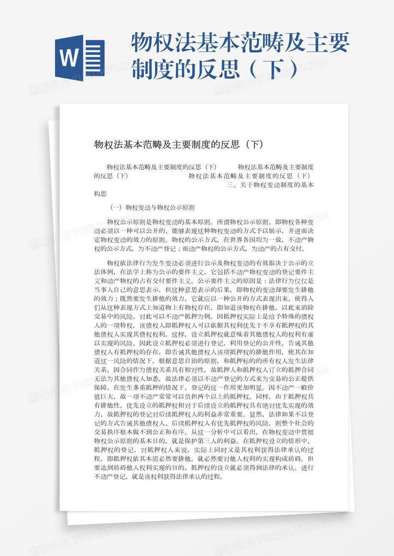 本作品为物权法基本范畴及主要制度的反思(下), 编号:r1p3bepyb9, 格式为 docx, 大小1 MB, 本作品下载后,先解压,解压之后用推荐软件 Word(2010) 打开, 然后进行编辑功能。