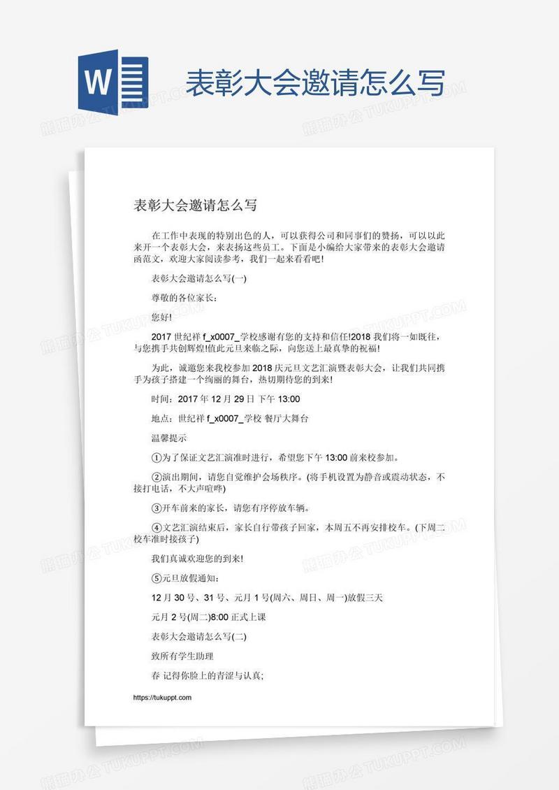本作品为表彰大会邀请怎么写, 编号:r1p3bpdyk9, 格式为 docx, 大小1 MB, 本作品下载后,先解压,解压之后用推荐软件 Word(2010) 打开, 然后进行编辑功能。