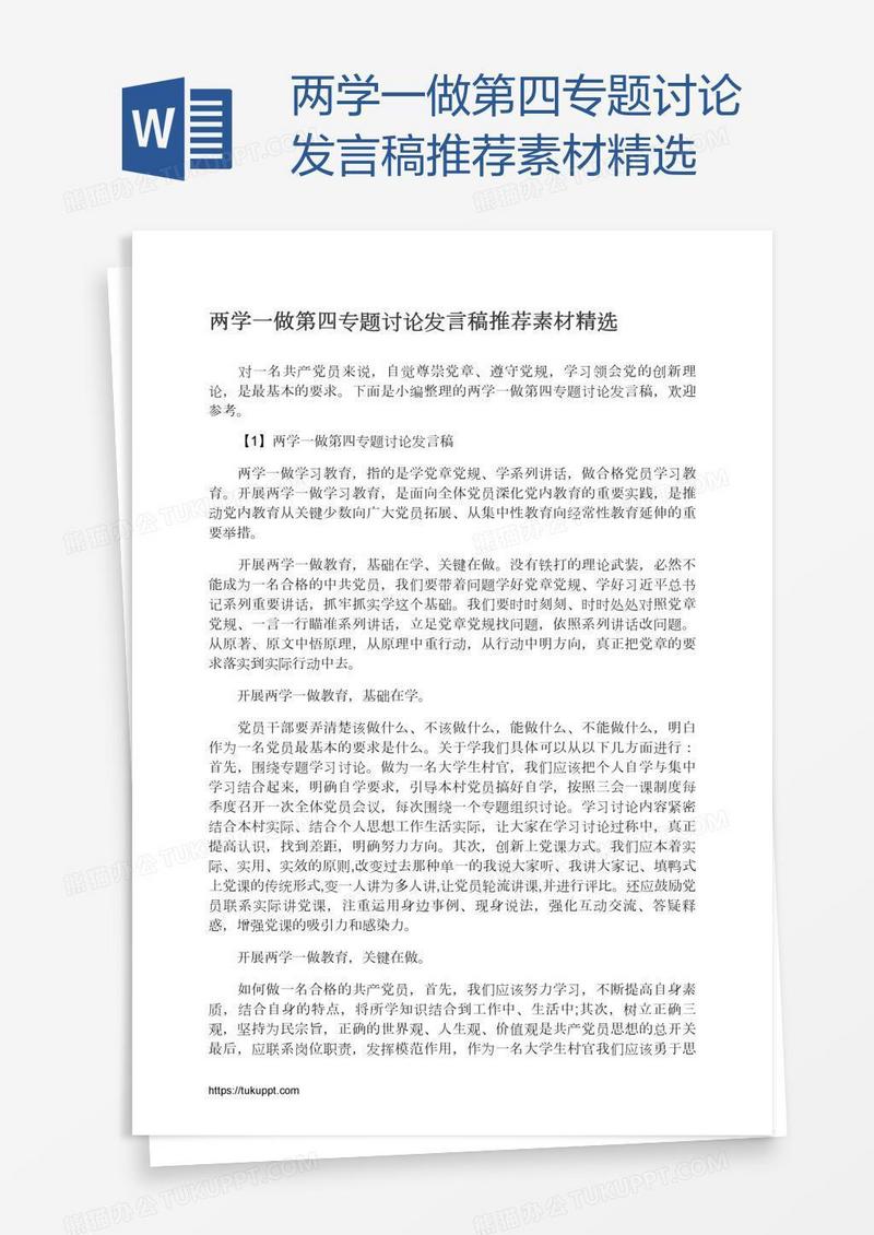 本作品为两学一做第四专题讨论发言稿推荐素材精选, 编号:r1p3brpjk9, 格式为 docx, 大小1 MB, 本作品下载后,先解压,解压之后用推荐软件 Word(2010) 打开, 然后进行编辑功能。