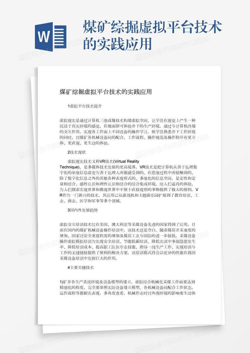 本作品为煤矿综掘虚拟平台技术的实践应用, 编号:r1p3g3rdv9, 格式为 docx, 大小1 MB, 本作品下载后,先解压,解压之后用推荐软件 Word(2010) 打开, 然后进行编辑功能。