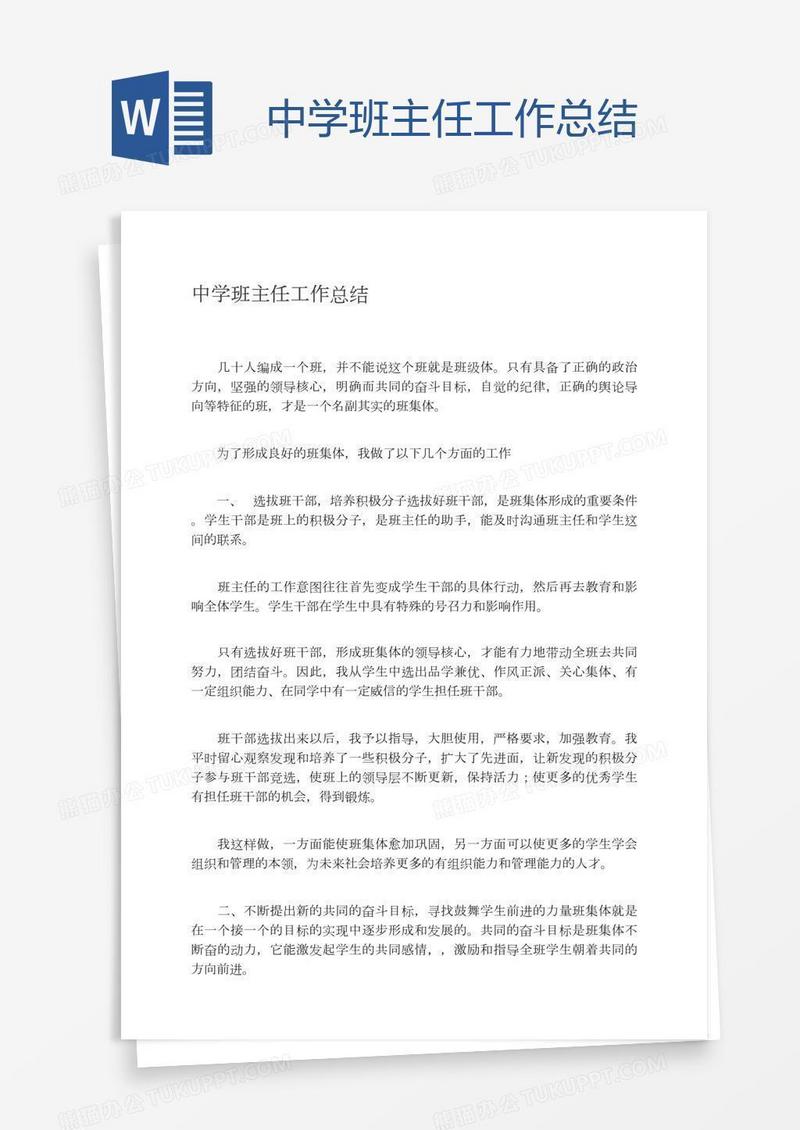 本作品为中学班主任工作总结, 编号:r1p3n26b09, 格式为 docx, 大小1 MB, 本作品下载后,先解压,解压之后用推荐软件 Word(2010) 打开, 然后进行编辑功能。