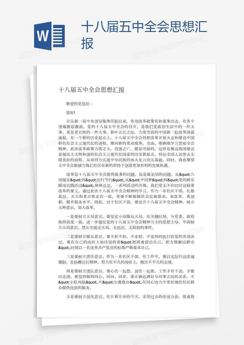 本作品为十八届五中全会思想汇报, 编号:v9lw27v45a, 格式为 docx, 大小1 MB, 本作品下载后,先解压,解压之后用推荐软件 Word(2010) 打开, 然后进行编辑功能。