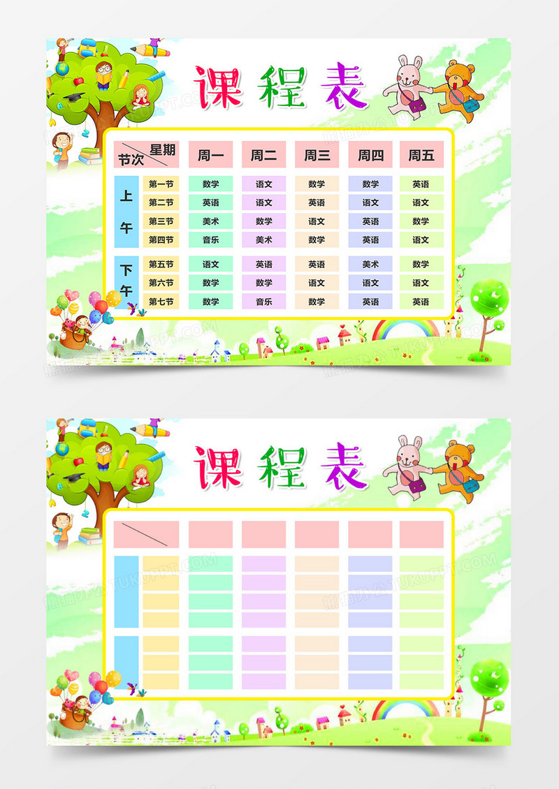 本作品为绿色童趣果树word课程表模板, 编号:v9lw2m2lma, 格式为 docx, 大小4 MB, 本作品下载后,先解压,解压之后用推荐软件 Word(2016) 打开, 然后进行编辑功能。