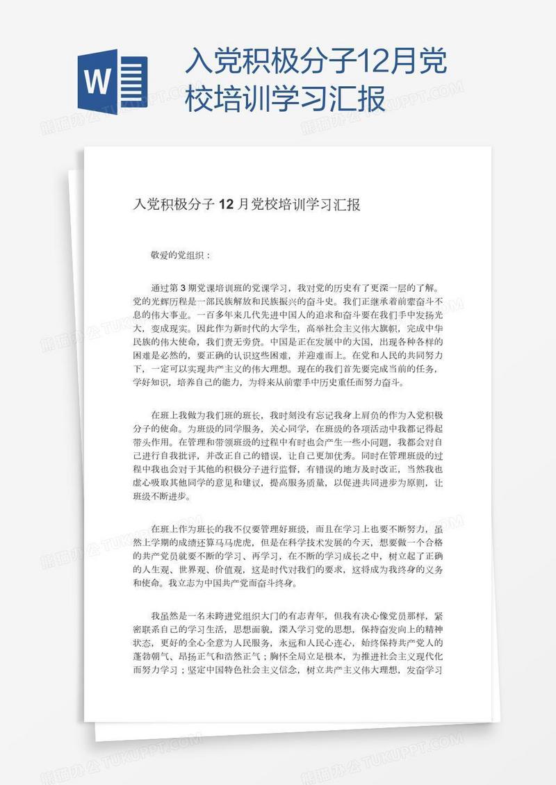 本作品为入党积极分子12月党校培训学习汇报, 编号:v9lw2vpq2a, 格式为 docx, 大小1 MB, 本作品下载后,先解压,解压之后用推荐软件 Word(2010) 打开, 然后进行编辑功能。