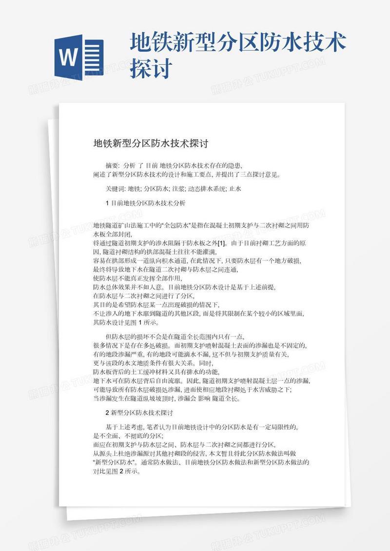 本作品为地铁新型分区防水技术探讨, 编号:v9lwb2bnma, 格式为 docx, 大小1 MB, 本作品下载后,先解压,解压之后用推荐软件 Word(2010) 打开, 然后进行编辑功能。