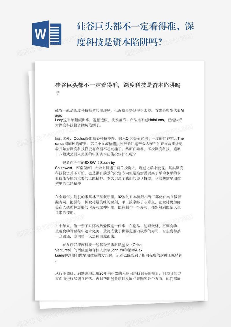 本作品为硅谷巨头都不一定看得准,深度科技是资本陷阱吗?, 编号:v9lwbdlp5a, 格式为 docx, 大小1 MB, 本作品下载后,先解压,解压之后用推荐软件 Word(2010) 打开, 然后进行编辑功能。